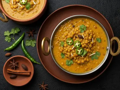 Serve over plain chawal (white rice) for a complete protein — the combination of rice and lentils contains all essential amino acids. With roti (flatbread) it becomes a light but filling meal. Always serve with nimbu (lemon) wedges on the side — guests should be able to adjust the tang themselves.