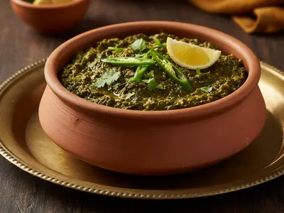 It grows as a winter weed in wheat fields and has been gathered and cooked by Punjabi farmers for thousands of years. This dark green, slightly dusty-looking leaf grows all over Punjab in cooler months, and experienced cooks consider it the superior saag — more flavour, more nutrition, and a deeply earthy character that spinach simply cannot match. Fun fact: bathua is technically a weed that happens to be extraordinarily nutritious — higher in iron, calcium, and vitamins than most cultivated greens. Rural Punjab has known this for centuries; now nutritionists are catching up. This recipe is simple, honest, and delicious — the way village cooking always is. Look for bathua at sabzi mandis (vegetable markets) from November through February. Buy plenty and make a big batch — this is the kind of thing you'll crave all summer and regret not making more of.