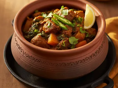 Cooking greens with meat stretches the protein further — a practical technique with deep cultural roots. The spice profile is restrained — whole spices, generous ginger, and not much else, allowing the natural flavours of both gosht (mutton) and sabzi (vegetables/greens) to take centre stage. This is honest mountain cooking. Fun fact: KP's mountainous terrain means locally grown vegetables have particularly intense flavour — shorter growing seasons and cooler temperatures concentrate the flavours. KP cooks understand this and intentionally use fewer spices so these ingredients can be tasted properly. The technique here is almost stew-like — everything cooks together slowly, exchanging flavours until the distinction between 'meat' and 'vegetable' dissolves into one unified, deeply satisfying dish. This is food that has been cooking on wood fires in stone homes for centuries.